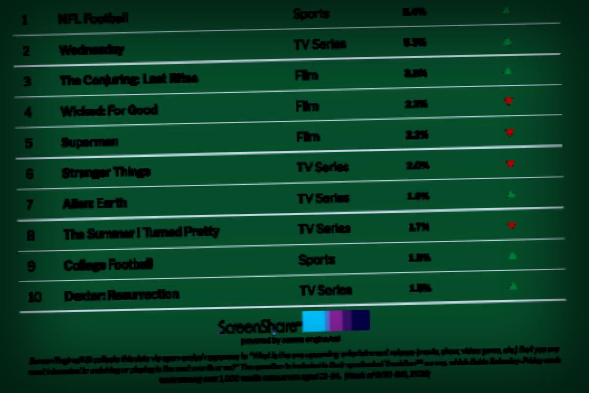 NFL Football Dominates Audience Excitement, Outselling New Movies and TV Shows